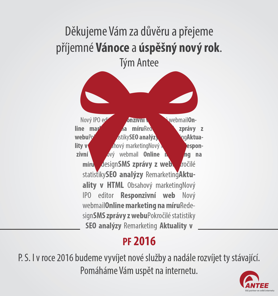 dovolte mi, abych Vám popřál krásné svátky a všechno dobré do nového roku. Zároveň bych se rád ohlédl zpět a připomněl nejdůležitější novinky roku 2015. Také bych Vám chtěl nabídnout malou ochutnávku služeb, které představíme v roce příštím.